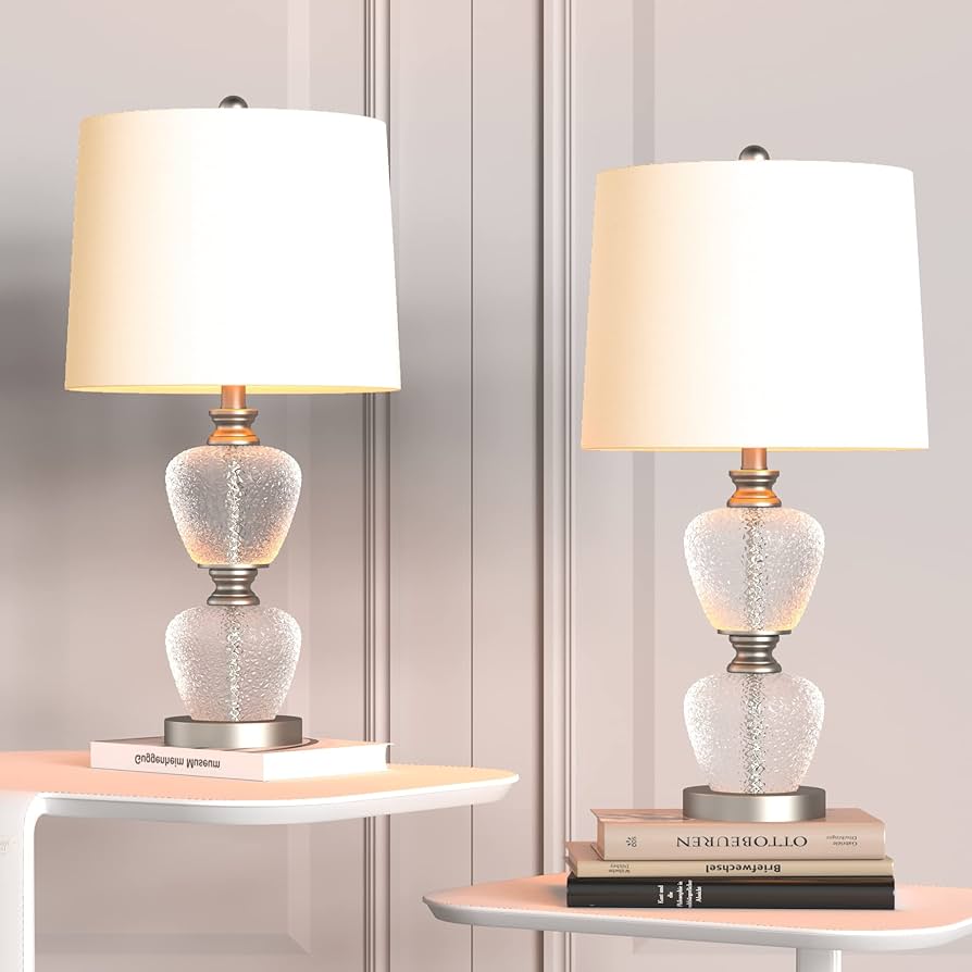 Glass table lamps offer both function and style. The glass allows light to pass through the base, creating a diffused and inviting glow. This can be especially nice for creating a cozy atmosphere in a living room or bedroom.